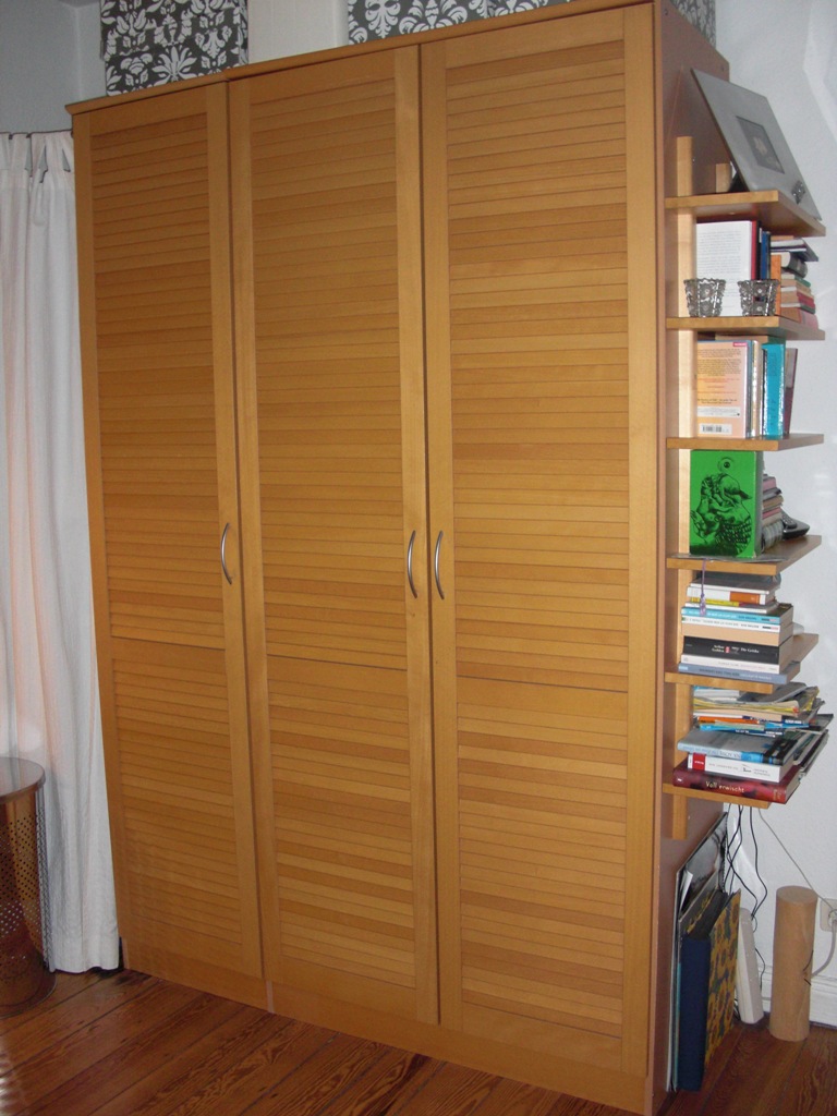 Maße: B 1,50 (+ 0,21 angebautes Regal), H 2,25, T 0,54
