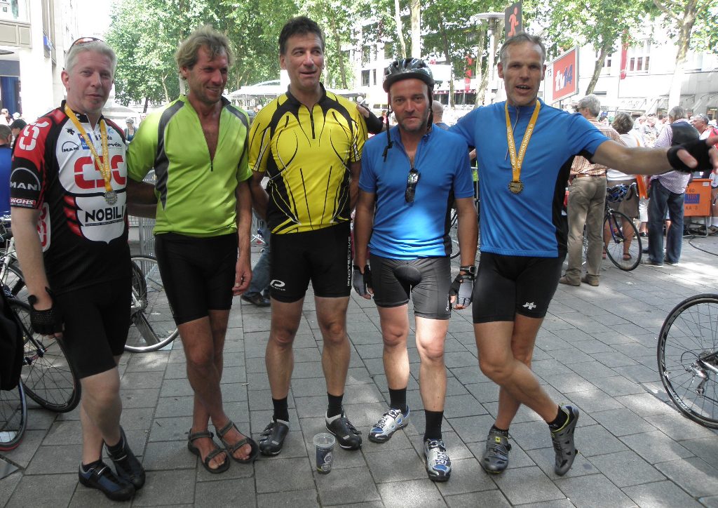 Unsere Athleten am Start: Detlev Meyer, Ralf Hopp, Günter Rolf, Helmut Wulff, Günther Huth (von links), Dirk Steffens (nicht im Bild), u.a